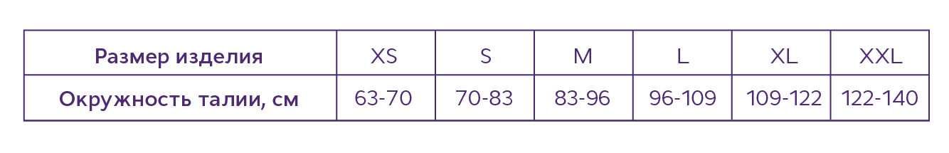 Если обхват талии пользователя находится на пересечении двух размеров в размерной таблице, рекомендуем выбрать больший размер изделия.