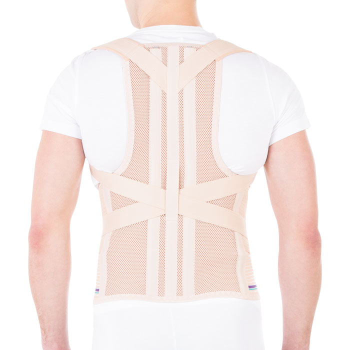 - корректор осанки усилен двумя длинными, складными моделируемыми ребрами жесткости, расположенными в проекции поперечных отростков позвонков
